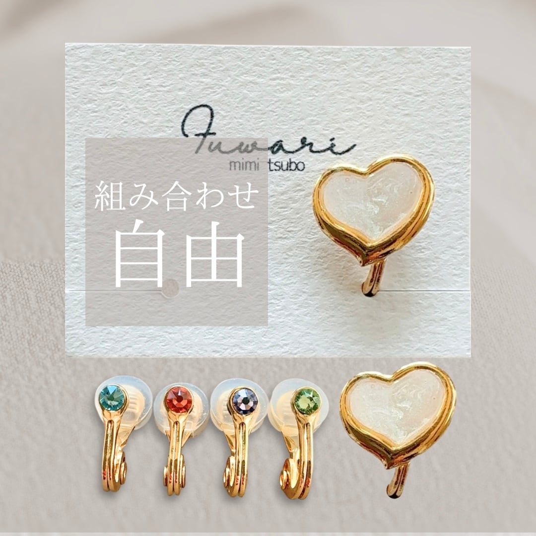 耳つぼイヤリング オープンハート スワロフスキー ゴールド